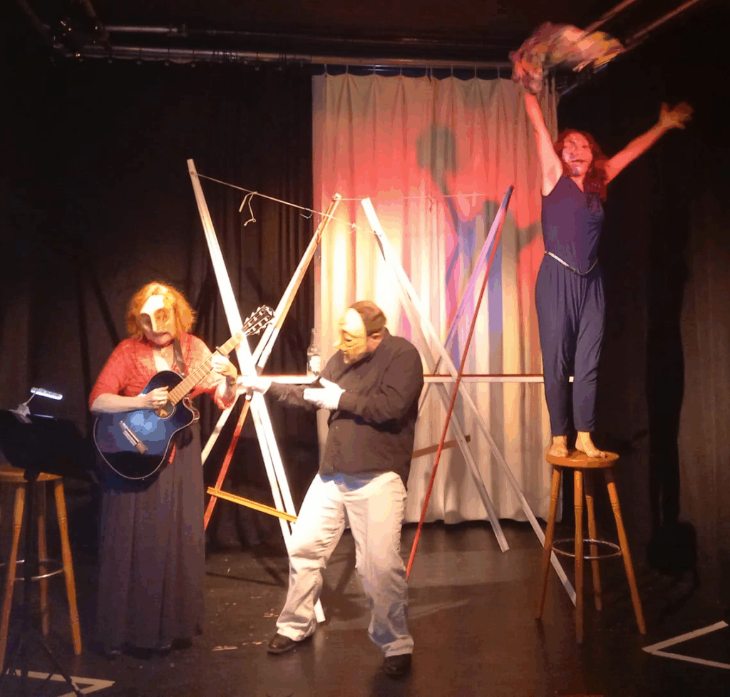 Auch für Erwachsene gibt es was zu Sehen und zu Hören beim Figurentheater Daisy Blau. An verschieden Produktionen des Theaters Gegendrucks hat Daisy Blau mit und ohne Figuren mitgewirkt, die Inszenierung des Roman Mephisto von Klaus Mann mit Schattenspiel ist in Arbeit, einige Hörspiele sind jederzeit online zu hören.